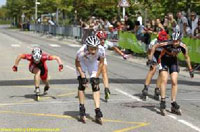 Au départ chez les féminines, une trentaine de patineuses (dont Sophie, Céline Cognard, Solen, Christelle et moi), un bon peloton pour une première édition. Je démarre plutôt tranquille comme le reste du groupe, puis on se retrouve rapidement à 7 puis à 6. Étant la seule sans coéquipière, je n’ose trop rien tenter, mais j’en profite pour ne pas trop travailler lors des quelques attaques pour ramener le groupe. Chacune prend son relais régulier et attend le sprint. Dans les 500 derniers mètres, je pars de la 5e place et arrive à remonter au niveau de la 3e place sur la ligne, mais n’ayant pas le pied assez grand, je me contente de la 5e place… Pour le reste de l’équipe Christelle, Céline et Sophie finissent respectivement 9, 10 et 11ème ! Anne-Sophie